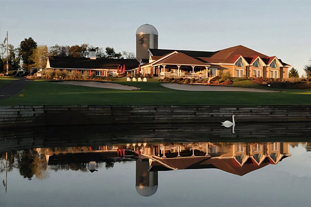 The par-70, 18-hole course, designed by Jon Thompson, opened in 1994 and spans 6,000 yards, featuring multiple elevation changes and scenic holes overlooking water hazards. Other amenities include two practice greens, the aforementioned pro shop, the Spring hollow Bar & Grille, a banquet venue and an outdoor event space.